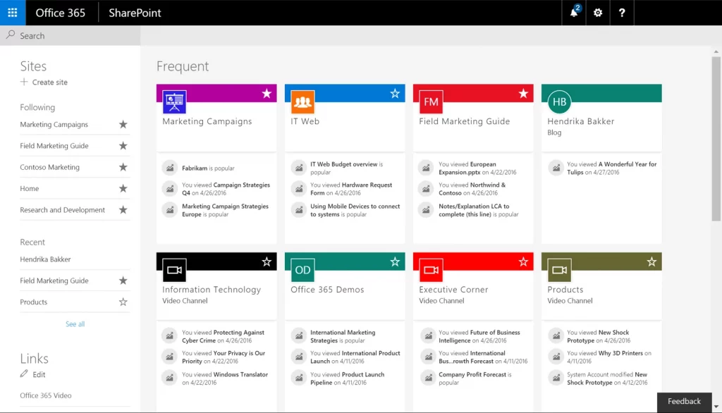 Gracias a la potente herramienta de gestión documental de Microsoft su empresa podrá acceder, almacenar, administrar y compartir su información desde todos sus dispositivos. Especialmente diseñada para equipos y proporcionando las mejores funciones de colaboración, como gestión de proyectos, mensajería y uso compartido.